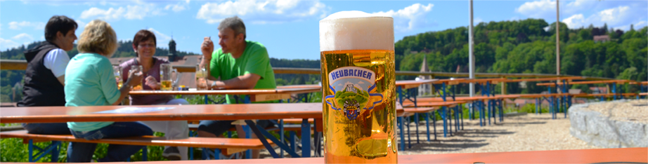 Unser Biergarten auf dem Zeiselberg befindet sich keine 3 Minuten per Fuß entfernt und bietet mit seiner erhöhten Lage einen grandiosen Panoramablick über die Stadt Schwäbisch Gmünd.